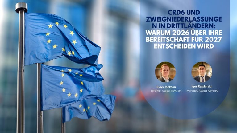 Durch einen frühzeitigen Start und die Behandlung der CRD6-Vorbereitungen als strukturiertes Programm können Banken nicht nur konform, sondern auch zuversichtlich in das Jahr 2027 starten. Aspect Advisory arbeitet bereits mit Kunden zusammen, um dieses Ergebnis zu erzielen. Insbesondere für Banken mit nur einer Filiale wird 2026 über Ihr Jahr 2027 entscheiden.